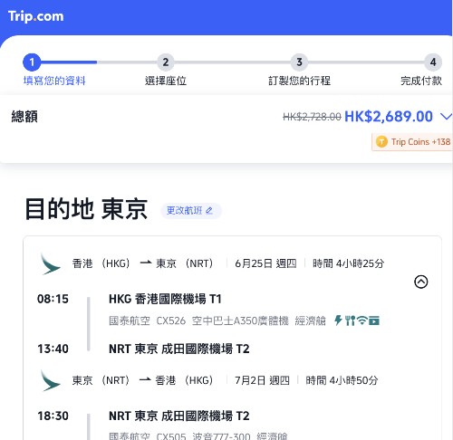 【國泰.東京再減多啲】香港飛東京來回連稅$2,689起!航班時間無限制,可早去晚返!4至6月出發