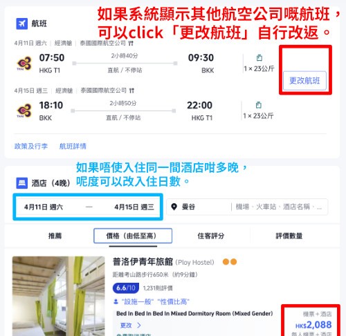 【國泰 / 泰航.曼谷套票優惠】潑水節都有優惠!可週末出發!曼谷來回機票+酒店連稅:5日4夜$2,088起、8日7夜$2,166起!出發日期至4月30日 (優惠至3月20日)