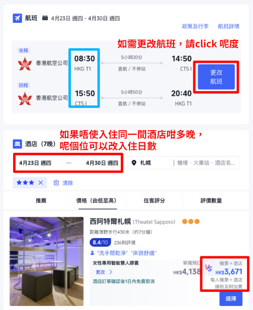 (可自行選擇其他航空公司如 HK Express,價錢會相應調整)