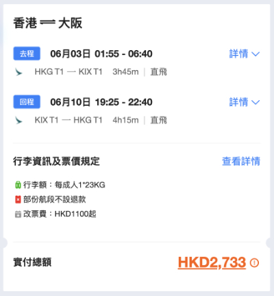(於付款頁輸入中銀信用卡9折推廣碼【BOCT627】後,來回連稅:$2,733起|推廣碼只於2月4日有效)