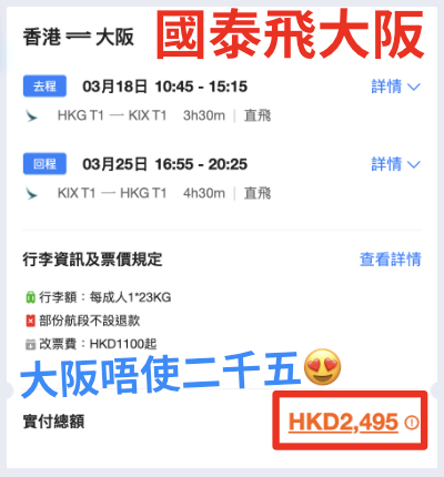 【國泰.日本再減多啲】日本四大航線連稅二千四起!福岡$2,438起、名古屋$2,481起、大阪$2,495起、東京成田$2,504起!包23kg寄艙行李+7kg手提行李|國泰航空 (優惠至11月26日)