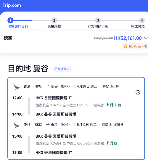 【國泰.曼谷抵Deal】香港飛曼谷來回連稅$2,161起!多個航班選擇!3至4月出發