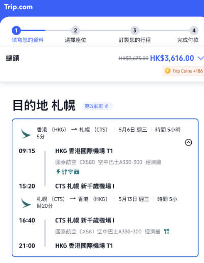 預訂網址 – Trip: https://hk.trip.com