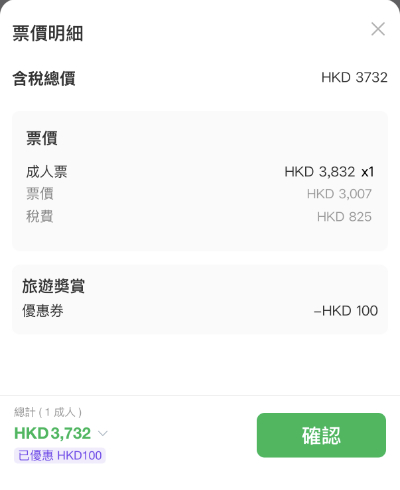 (領取優惠券減 $100後,來回連稅:$3,732起|留意價錢自動加咗旅遊保險,如果想自行安排,可剔走有關選項)