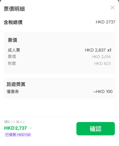 (領取減 $100 優惠碼後,來回連稅:$2,737起)