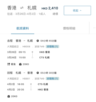 大灣區航空北海道快閃優惠!來回連稅二千四起!仲包埋寄艙行李!