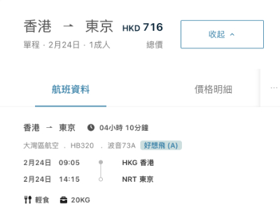 香港飛東京連稅只需 $716起 (包20kg 寄艙行李+7kg手提行李+飛機餐)