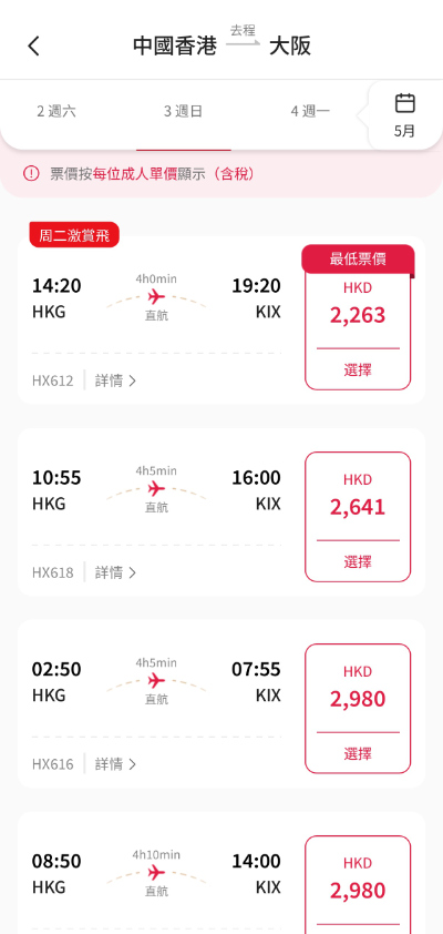 (優惠適用於手機版網站、手機 App 及微信小程序訂購,來回連稅 $2,263)