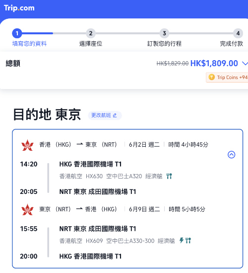 預訂網址 – Trip: https://hk.trip.com