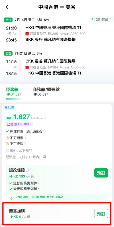 阿聯酋航空有隻抵飛,香港飛曼谷來回連稅只需 $1,627起!仲包25kg寄艙行李。價錢好吸引!