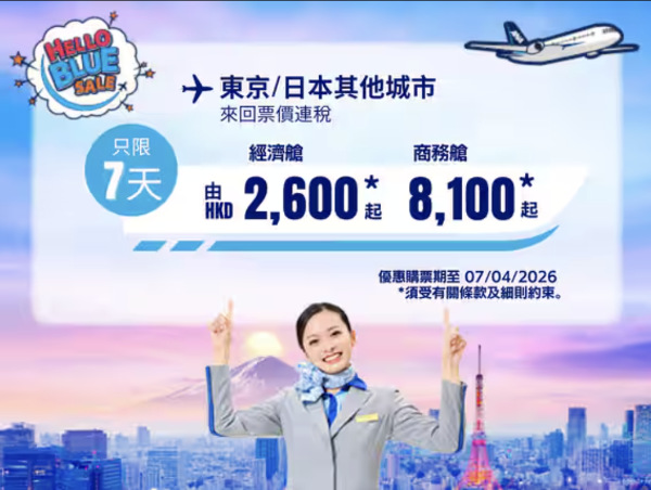 【ANA日本商務艙優惠】暑假 / 跨年都有平!香港飛東京商務艙來回連稅七千三起!免費送兩程日本內陸機!出發日期至12月 (優惠至4月7日)