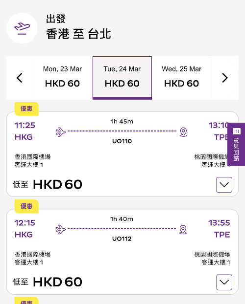 香港飛台北單程 $60起,來回連稅 $886起!要埋手提行李加多 $30,重點係要埋寄艙行李只需加多 $80。