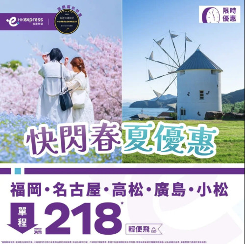 終於有福岡!HK Express 推出福岡、名古屋、高松、廣島、小松限時優惠!單程只需 $218起!福岡來回連稅 $1,258起!