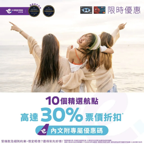 HK Express x 滙豐信用卡快閃優惠第9擊!日韓台東南亞等10個航點低至7折!