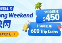八達通:KKDAYOC125 (預訂本地酒店住宿滿$2,000,可享$125折扣優惠)