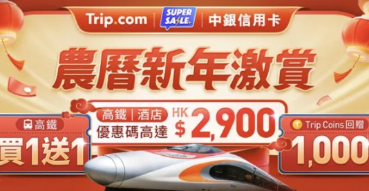 【農曆新年激賞 Mega Sale】大派高達$2,900高鐵及酒店優惠券碼、高鐵買一送一、訂高鐵加酒店回贈$78、1,000 Trip Coin 回贈等