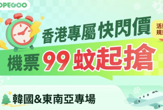 【$99機票快閃優惠】一連7日搶韓國及東南亞99蚊機票!首爾 / 釜山 / 濟州 / 曼谷 / 清邁 / 布吉 / 新加坡 / 吉隆坡 / 富國島 / 河內$99起|HopeGoo