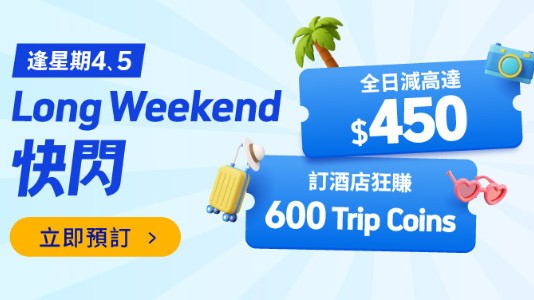 【Long Weekend 快閃】送您高達$900機票及酒店優惠券碼|Trip.com
