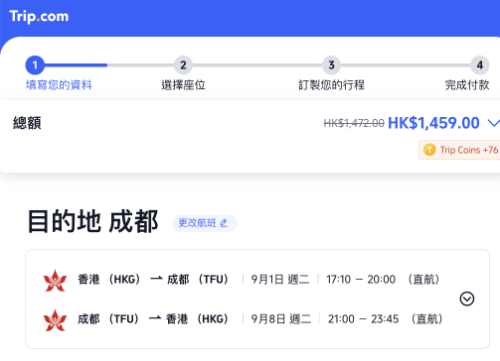 【年尾狂賞Mega Sale】機場快線 $12;金光飛航 $1;機票一口價連稅$399起;高達$7,000 優惠代碼;預訂機票 / 酒店享高達 8% Trip Coins 回贈;訂機票+酒店即賺1,600...