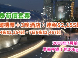 國泰筍價套票!首爾「機票+酒店」連稅:4日3夜$2,155起、7日6夜$2,467起!早去午返!包30kg行李!2018年7月前出發 – 國泰航空 (優惠至12月31日)