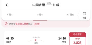 【港航.北海道快閃優惠】香港飛札幌來回連稅$2,823起!包寄艙行李+手提行李+隨身物品+飛機餐!靚時間早去下午返!3至6月出發