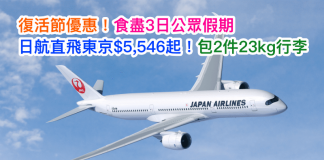 復活節優惠!食盡3日公眾假期.日航直飛東京$5,546起!包2件23kg行李 – 日本航空