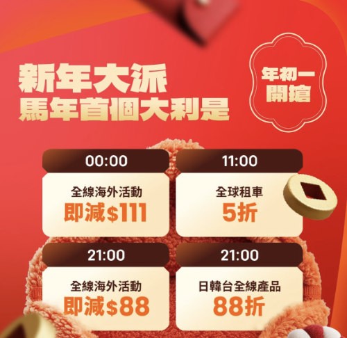 【Klook 新春派利是】全線海外活動勁減$111 / $88!全球租車5折!日韓台全線產品88折!