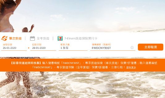 【旅保優惠碼】FWD 富衛.單次旅遊保險35%OFF!3日保費低至$74!全年旅遊保險30%OFF!