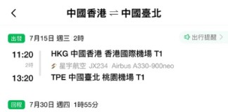 【星宇.台北再劈】暑假都減!香港飛台北來回連稅$1,191起!可早去晚返!包寄艙+手提+飛機餐!機票有效期長達12個月