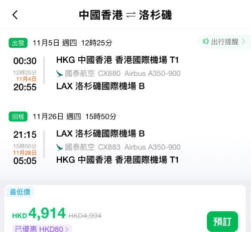 【國泰.洛杉磯優惠】香港直飛洛杉磯來回連稅$4,914起!最後機會喺加燃油附加費前入手!11月30日前出發|國泰航空 (優惠至3月31日)
