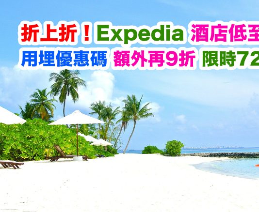 折上折!Expedia 酒店低至4折!用埋優惠碼額外再9折!限時72小時!