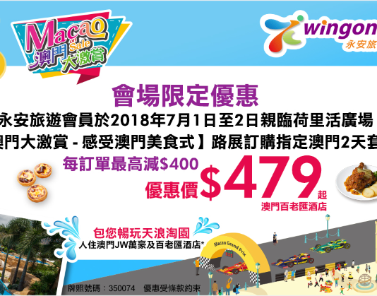 【澳門爆靚價】澳門套票每單勁減$400!「酒店+船飛」每位$479起!炎夏玩水包您暢玩天浪淘園(慳足$888) !送餐券及糖水 / 飲品券! -永安會員專享 – 永安旅遊 (優惠至7月2日)