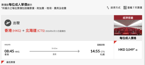 【港航.北海道快閃優惠】香港飛札幌來回連稅$3,049起!包寄艙行李+手提行李+隨身物品+飛機餐!靚時間早去下午返