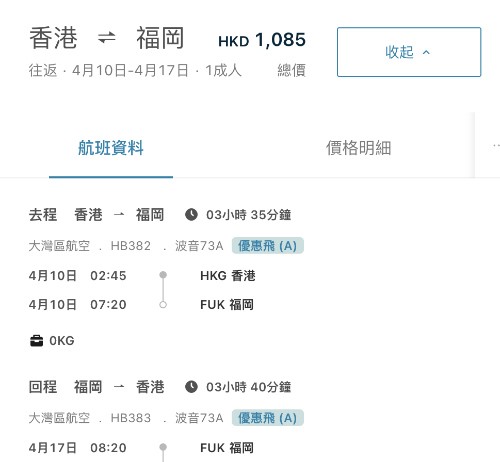 【灣空.福岡優惠】香港飛福岡來回連稅$1,085起!包手提行李!加多$300包埋寄艙行李!
