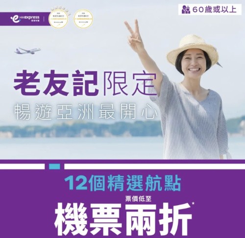 【HK Express|60+老友記專享優惠 】台北$22、首爾$60、名古屋 /...