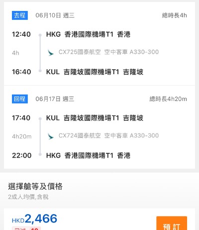 【國泰.吉隆坡2人同行優惠】香港飛吉隆坡來回連稅$2,466起!佛誕、端午節、七一都有優惠!5至7月出發
