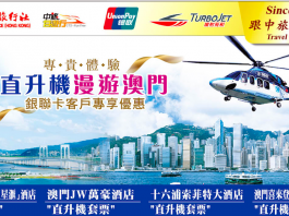 【豪坐直升機飛澳門】銀聯卡客戶專享「澳門直升機+5星級酒店」套票每人$3,339起 – 中旅社