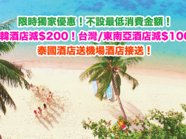 【號外.酒店優惠代碼】限時獨家優惠!不設最低消費金額!日韓酒店每單減$200!台灣/東南亞酒店每單減$100!泰國酒店送機場酒店接送!