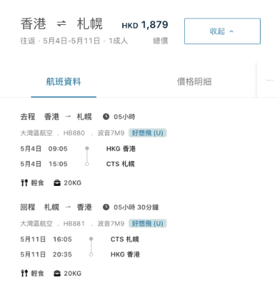 【灣空.北海道突發優惠】香港飛札幌來回連稅$1,879起!靚航班時間!4至6月出發