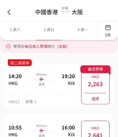 【港航.大阪快閃優惠】香港飛大阪來回連稅$2,263起!包寄艙行李+手提行李+隨身物品+飛機餐