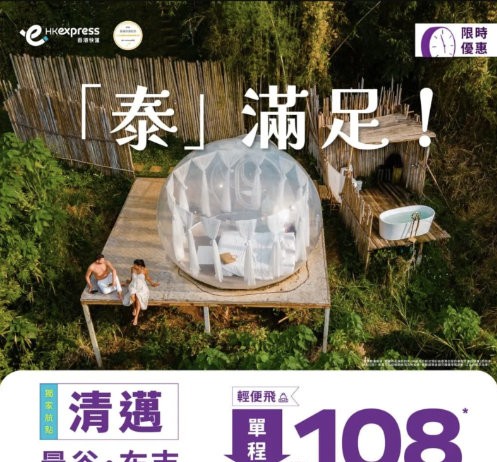 【HK Express 泰國限時優惠】曼谷 / 布吉 / 清邁單程$108起!來回連稅$1,120起|2月至6月出發 (優惠至1月28日)