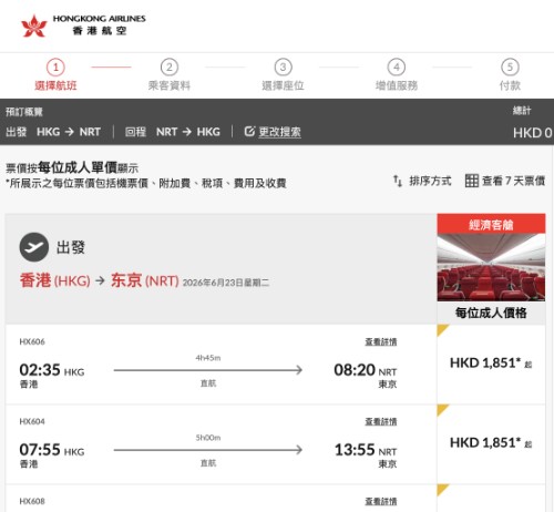 【港航.東京閃減】香港飛東京來回連稅$1,851起!航班任揀!可早去晚返!包寄艙行李+手提行李+隨身物品!3至6月出發