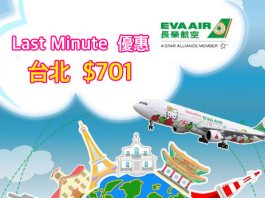 長榮Last Minute!香港來回台北只需$701,連稅$942!