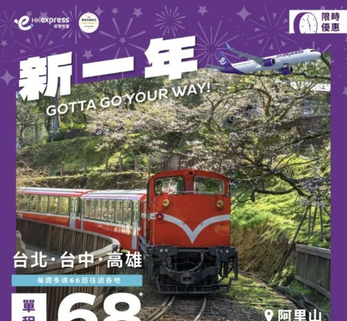 【HK Express 台灣限時優惠】香港飛台北 / 高雄 / 台中$68起!1至3月出發 (優惠至1月4日)