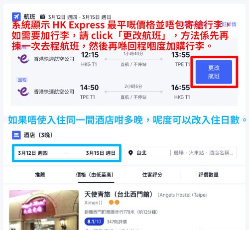 【HK Express 台北套票優惠】可週末出發、可早去晚返!來回機票+酒店連稅:4日3夜$1,467起、7日6夜$1,957起!1至3月出發