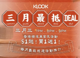 Klook 推出「3月最抵Deal」震撼優惠,今晚 (3月3日) 7PM、8PM、9PM 分三個時段推出指定活動買一送一 / $1美食優惠。
