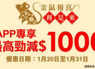 只要於1月底前於優惠頁面領取優惠券,再以永安手機版網站 / App 預訂,即可享高達$1,000 嘅折扣!