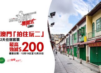 平玩澳門最後召集!澳門「拍住玩二」爆抵住宿套票嚟到最後一期勁減喇!永安會員喺12月19日至25日,登入永安旅遊網站 / 手機APP 預訂指定「澳門拍住玩二」住宿套票,並喺付款前輸入推廣碼「BC380」,每位即減$100 (每訂單最高減$200),以「澳門百老匯酒店+金光飛航香港來回澳門船飛+銀河精選美食券+4G電話數據卡」為例,折後每位只需$599起!