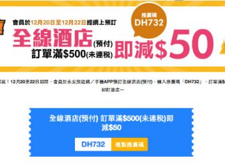 【酒店優惠碼】周末快閃!全線酒店訂滿$500減$50 – 永安旅遊 (優惠限12月22日)