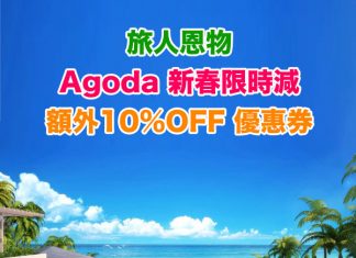 【新春限時減】Agoda 額外10%OFF 優惠券 (優惠至1月27日)